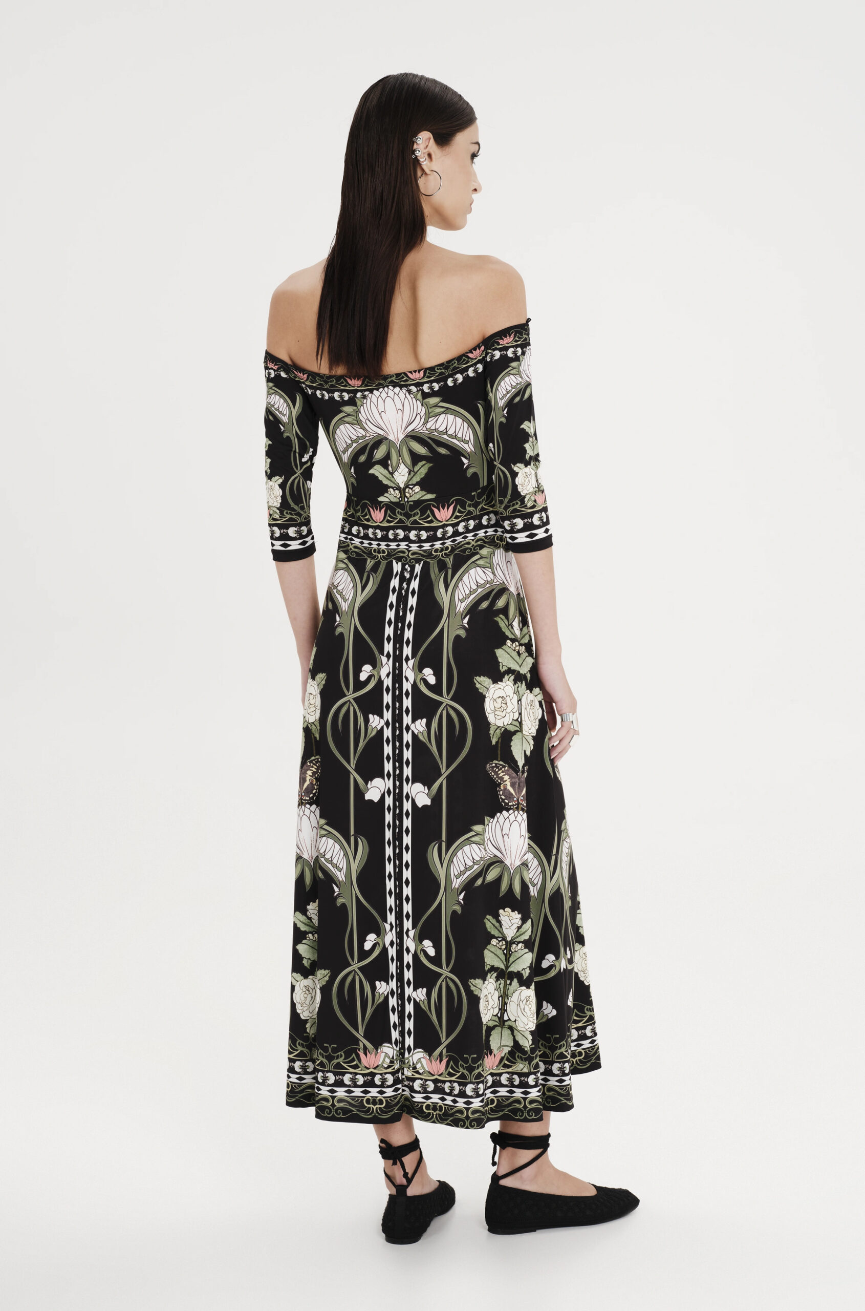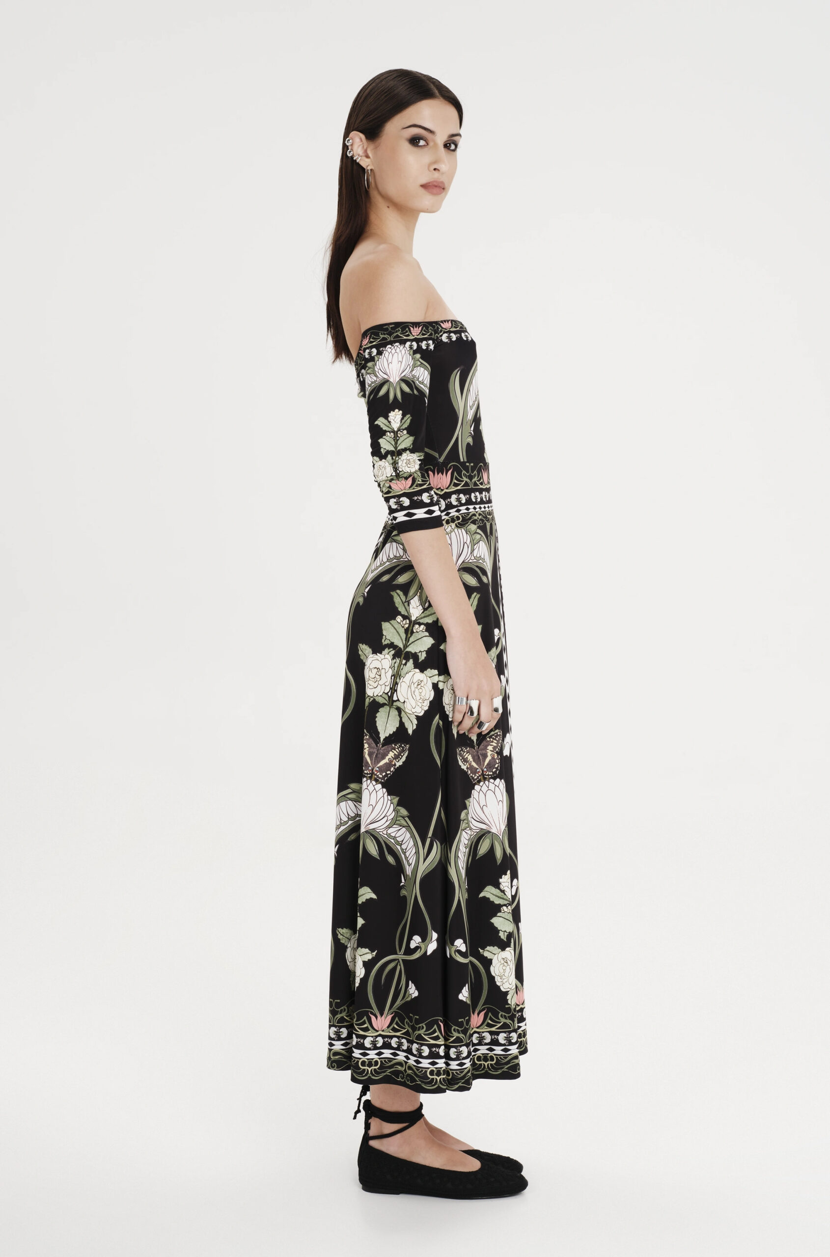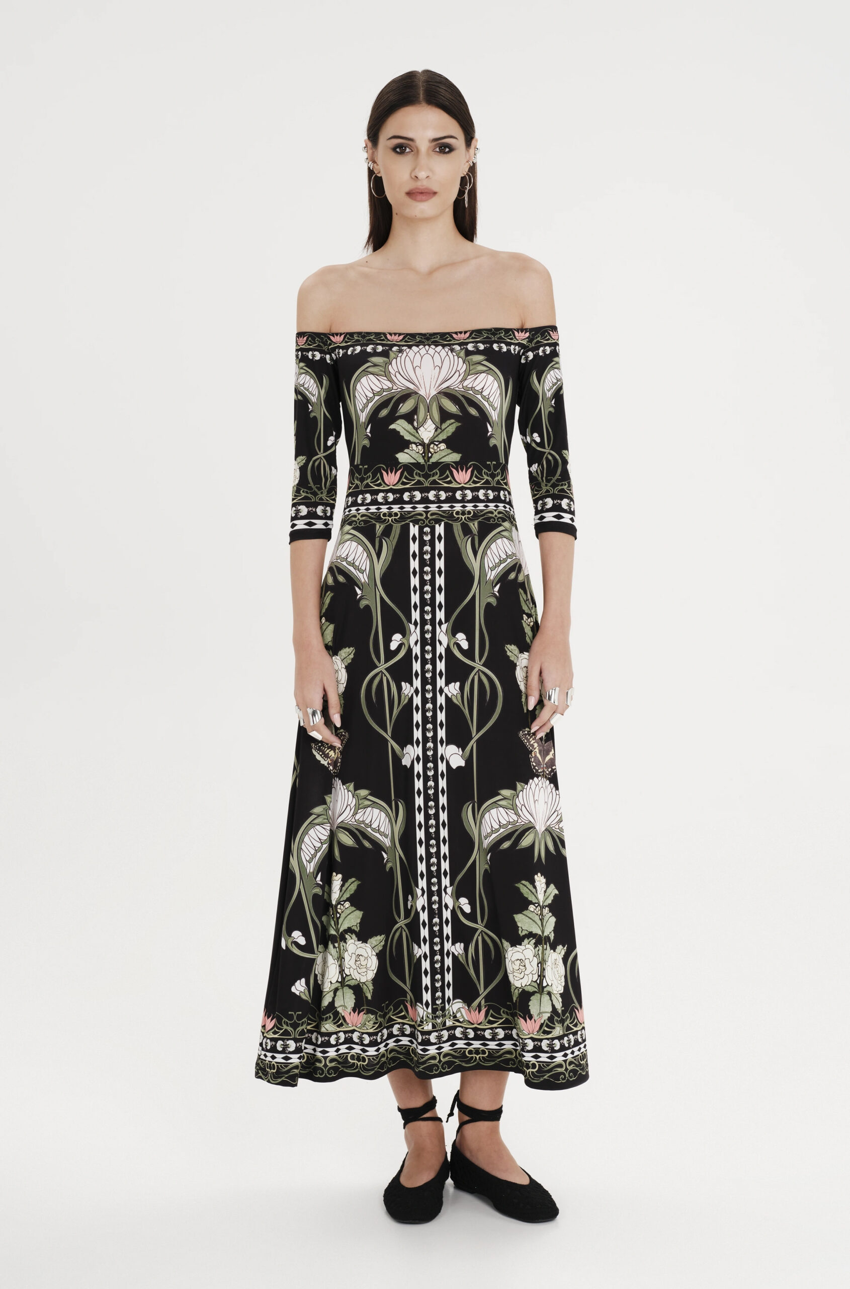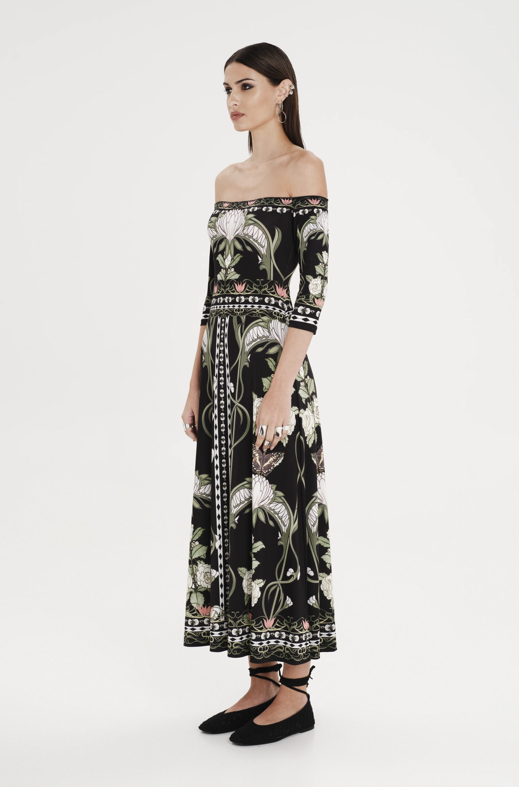 Wildflowers dress PEACE & CHAOS: Φόρεμα maxi off shoulder σε μαύρο χρώμα με πολύχρωμα σχέδια από την PEACE & CHAOS.